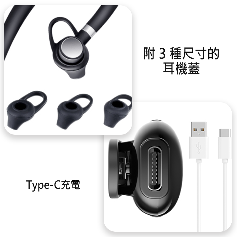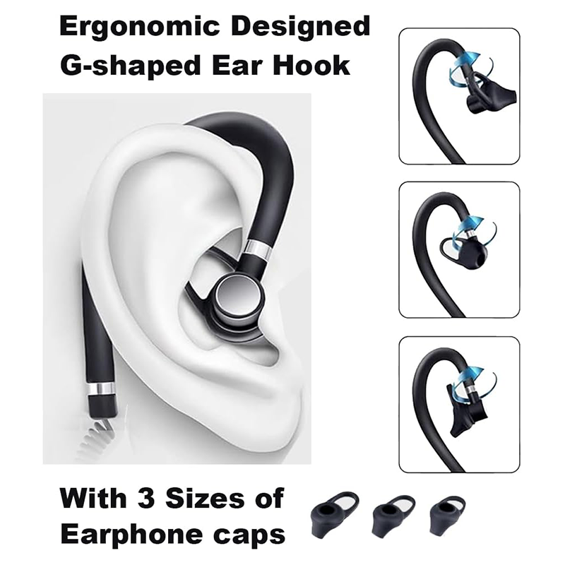 - Compact & lightweight design, can use it anywhere you want. The ergonomically designed G-shaped ear hook has a soft material design, holds it close to your ear, and is comfortable to wear for a long time. Designed with a clip, it can easily attach to the collar. The 360-degree rotating earpiece, is suitable for the left or right ear, with 3 sizes of earphone caps.